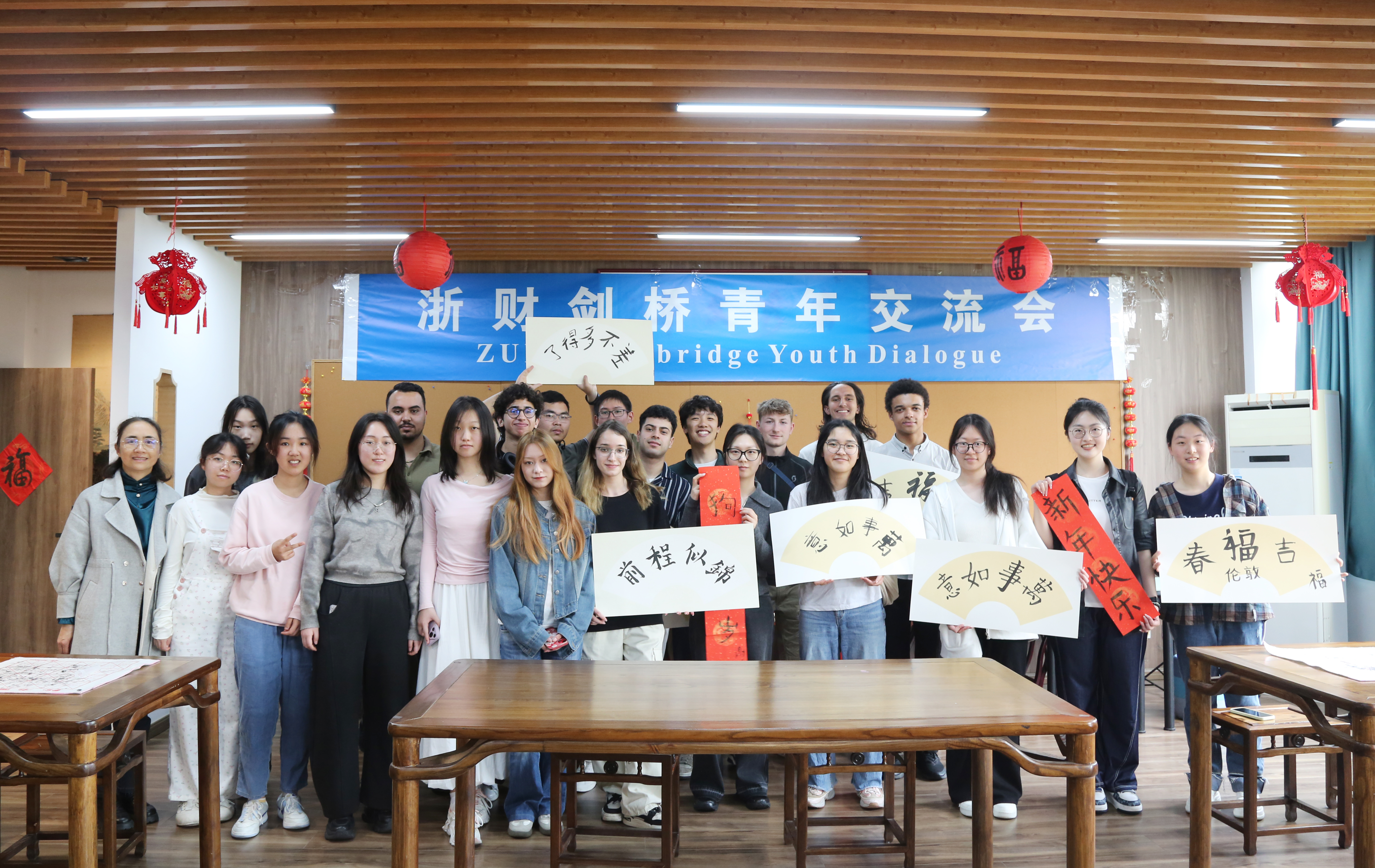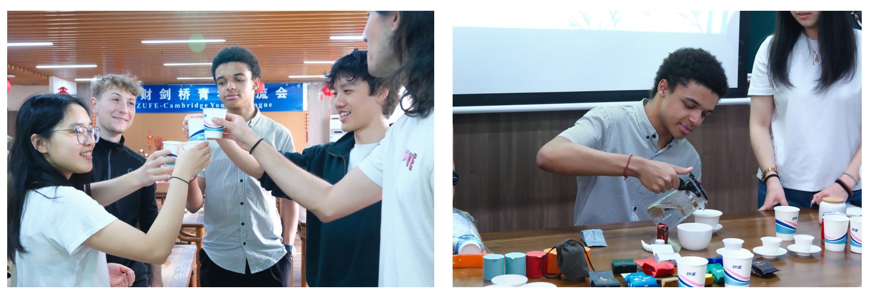 浙财—剑桥青年交流会以冷餐会形式展开,凤梨酥,绿豆糕等具有江南特色的美食,为全天的交流活动增添了温情。席间,中英学子畅谈校园生活趣事——剑桥学子分享了康河泛舟的传统,浙财学子则讲述了钱江观潮的体验。