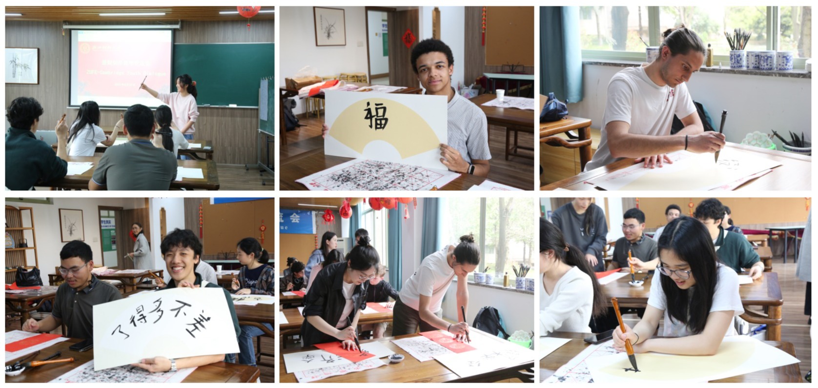 校书法社指导剑桥学子挥毫创作。红纸铺展,折扇轻摇,代表团成员执笔写下“万事如意”“福”字等春联与书法作品,墨香缭绕间传递对美好生活的东方祝愿。剑桥大学的伊斯汀同学手持亲手书写书法作品作为送给剑桥朋友的纪念品,“这非常独特,我想我或许一生都不会忘记。”