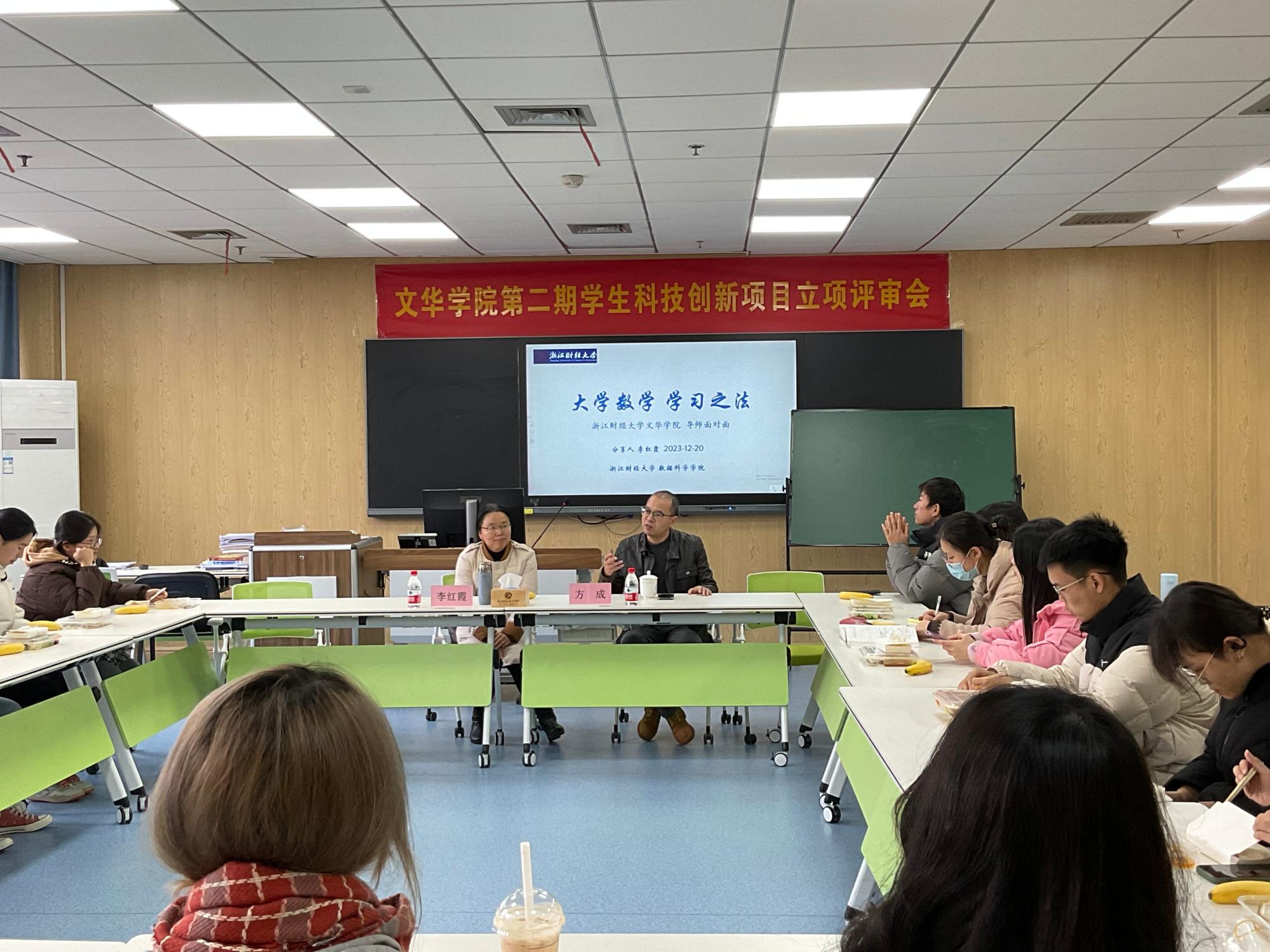 12月20日,文华学院开展了“大学数学学习之法”导师面对面活动。数据科学学院李红霞老师受邀担任主讲嘉宾。本次活动由教务处副处长方成主持,文华学院教学管理李珍以及部分创新班同学参与本次交流会。