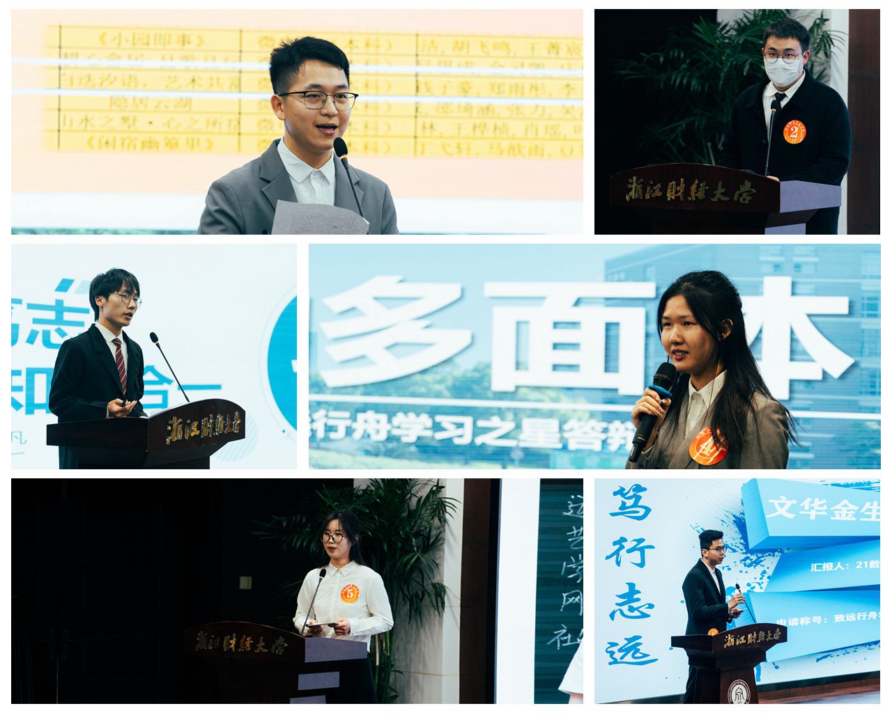 文华金生18位候选代表分别从专业学习、学术研究、学科竞赛、文体活动、社会实践和班团引领等方面进行了现场汇报。结合网络投票,最终评选确定各类奖项最终奖和提名奖。
