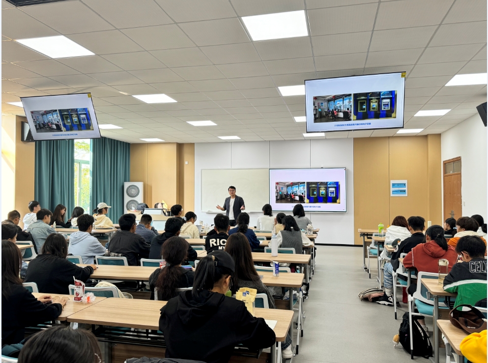 讲座伊始,金老师以银行服务的变化为切入点,生动展示了金融在数字化时代的演变历程。从传统柜台的功能转变到ATM机的兴衰,金老师通过贴近生活的实例,让同学们深刻感受到金融行业在快速发展中所发生的巨大变化,并引导大家认识到数字金融的重要性。