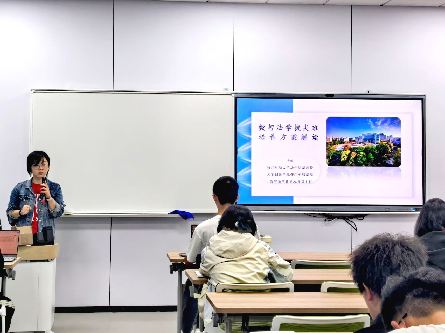 连续开展“明目标、建班风、促学风”的三风建设活动,通过项目主任、中层干部进课堂的方式,开展新生学习规范及培养方案解读活动。学校教务处副处长李毅、学院执行院长叶舟、数智会计拔尖班项目主任王会娟、数智法学拔尖班项目主任冯娇参加此次活动。