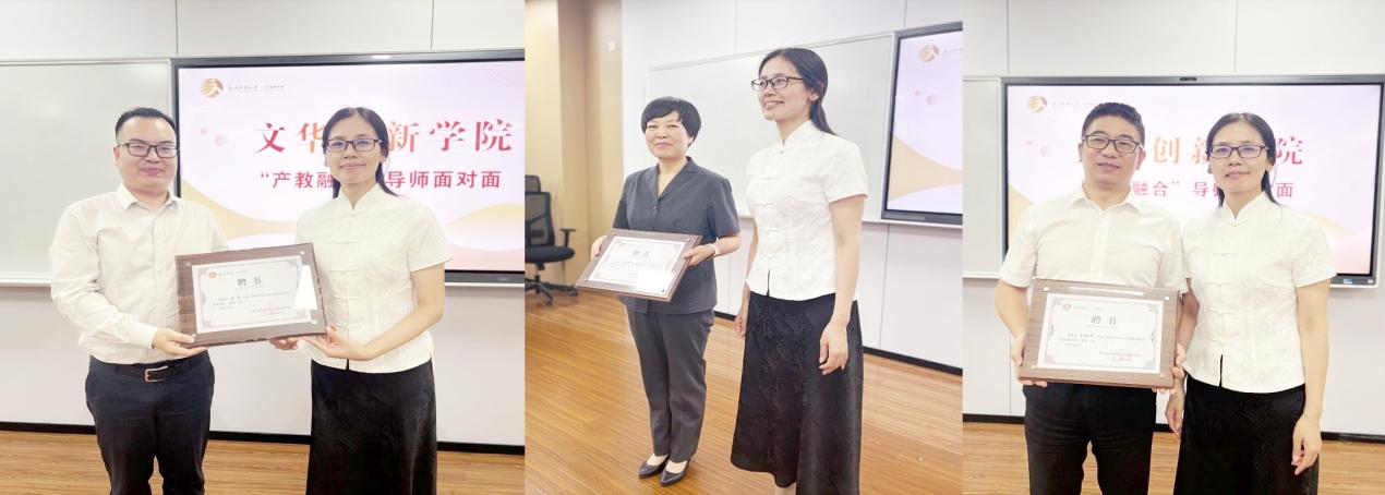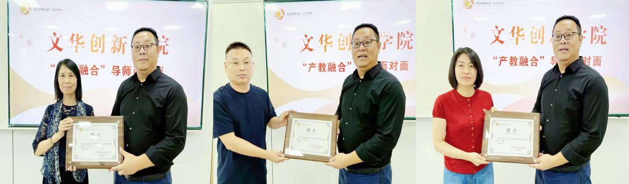 叶舟、沈晓敏给“数智会计”“数智法学”“智能金融”三个项目实践专家颁发聘书。