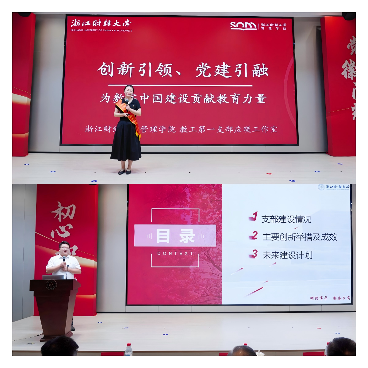 第三党支部等4个“支部建设创新奖”获奖支部代表,以及应瑛、丁松等两位“双带头人”教师党支部书记代表分别作了成果展示。