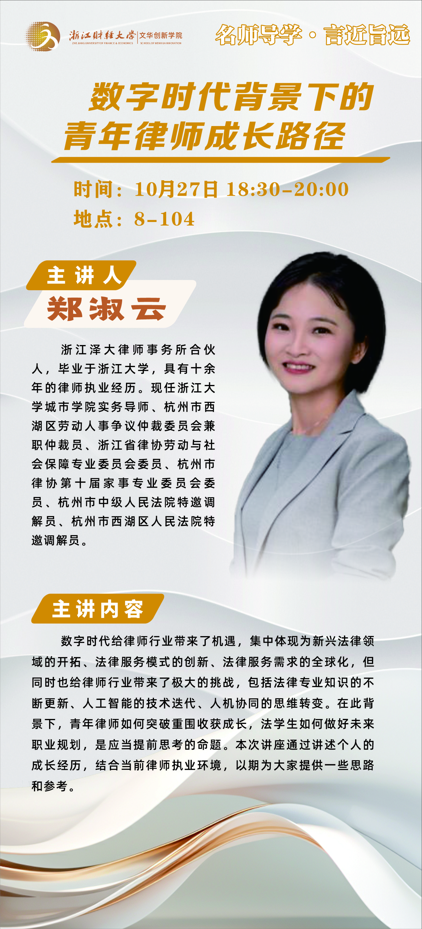 “名师导学·言近旨远”系列讲座预告:数字时代背景下的青年律师成长路径