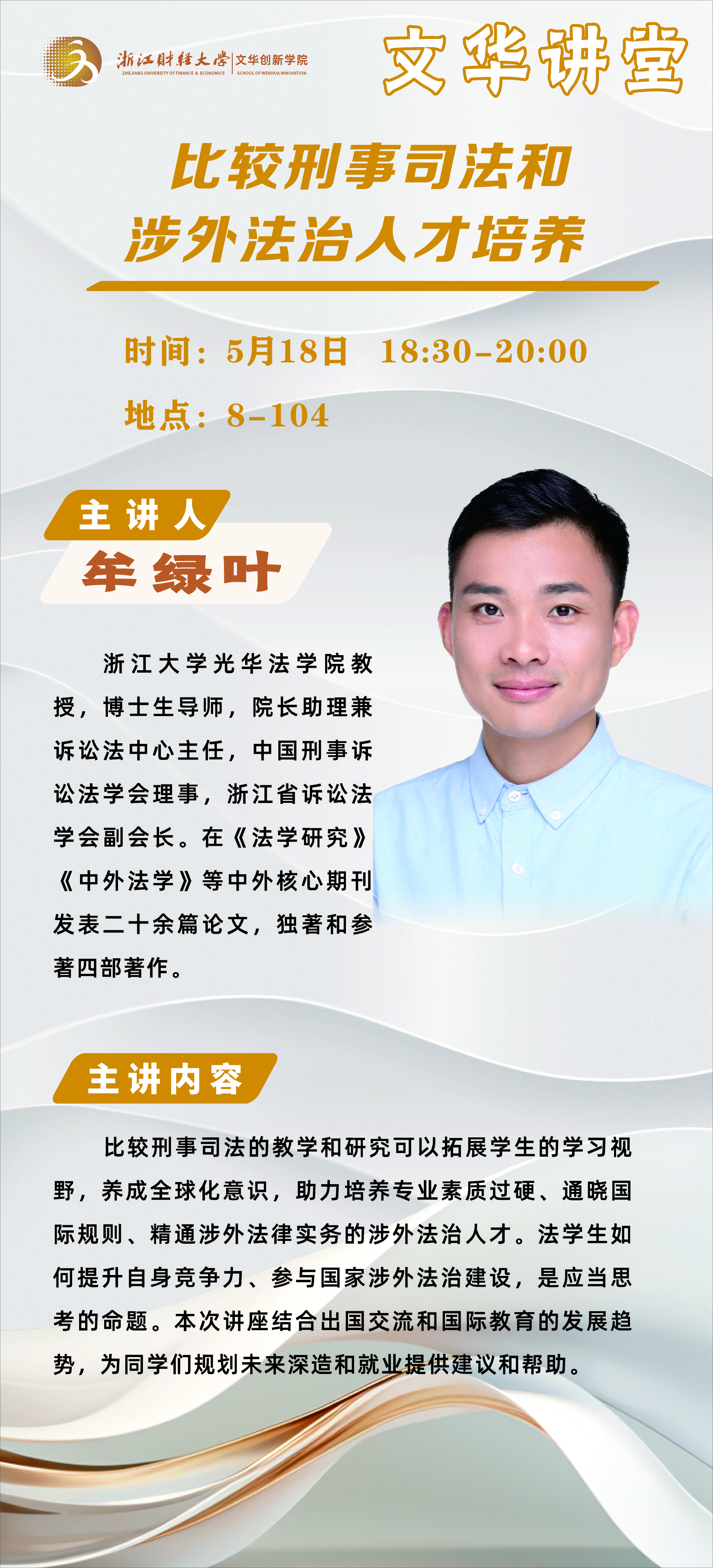 文华讲堂讲座预告:比较刑事司法和涉外法治人才培养