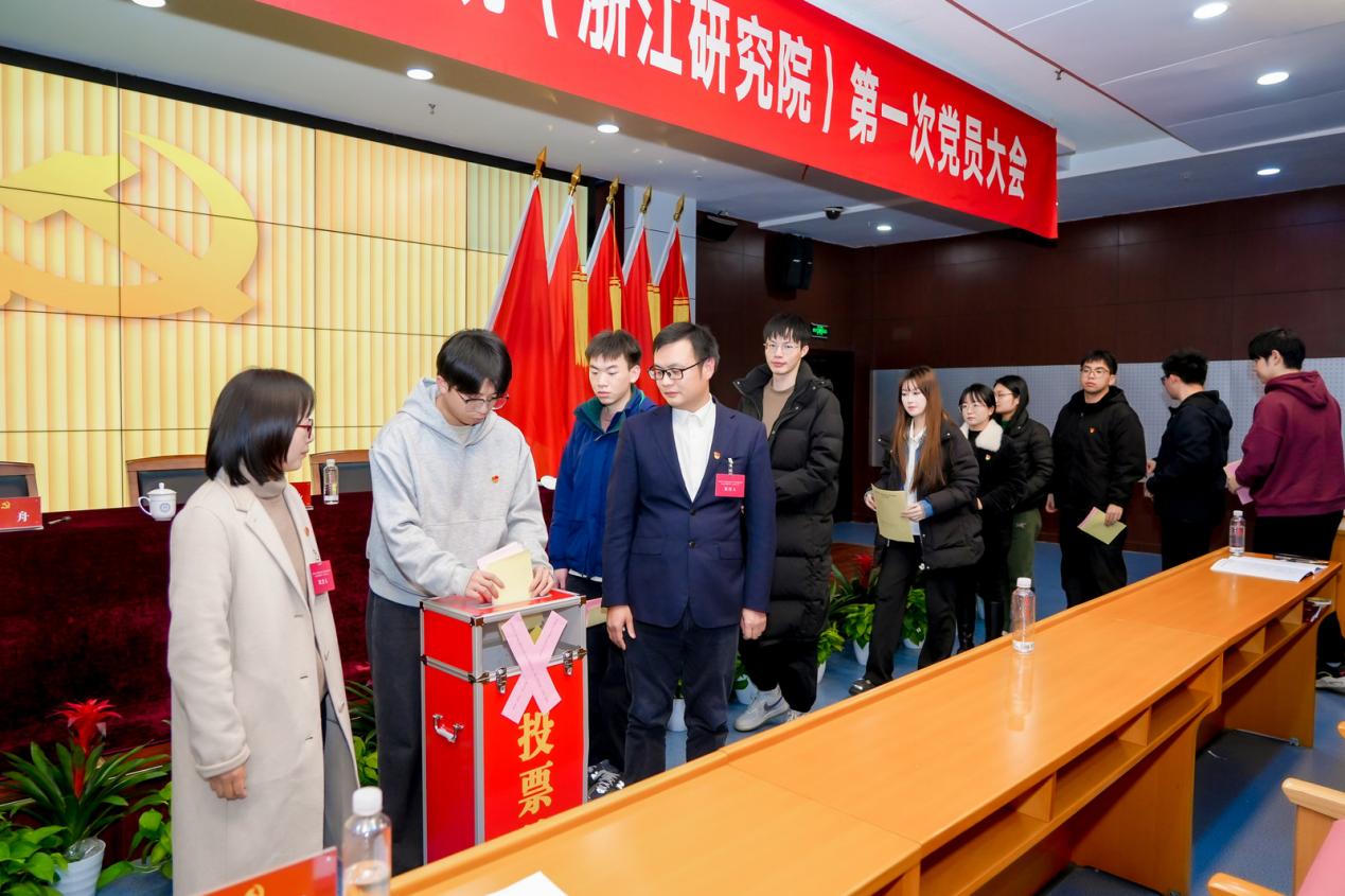 (浙江研究院)第一次党员大会在学术第二报告厅召开。校党委委员、副校长董进才出席大会并作讲话。学校职能部门相关干部、学院领导班子成员和全体师生党员130余人参加会议。