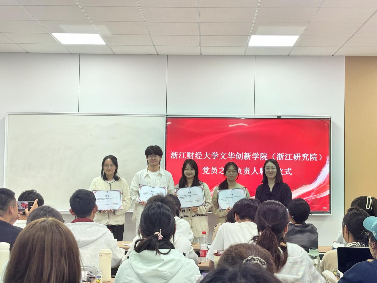 学习班上,举行了学院党员之家负责人聘任仪式,学院党办主任、专职组织员周衍彤为文研院第一届党员之家负责人颁发聘书。